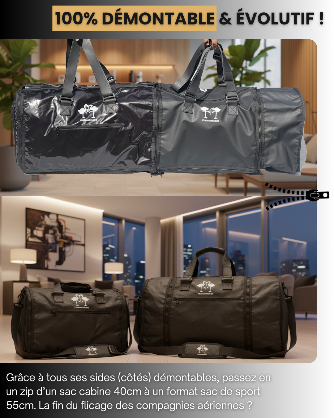 Chaque Side s’assemble, se détache, se personnalise. Choisissez la taille, transformez votre sac selon vos besoins. 1 extra-side inclus faisant passer le sac de 40 à 55 cm. Besoin de plus d’espace? Assemblez des ZZZIP entre eux pour créer des formats siamois, triamois, ou plus encore. Vous décidez la destination, il s’y adapte.