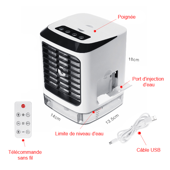Jusqu'à -7° en moins d'une heure, selon la température, l'espace et l'humidité de l'air ambiant avec le refroidisseur le plus plébiscité de l'été. Versez de l'eau glacée dans le réservoir pour un meilleur rendu.